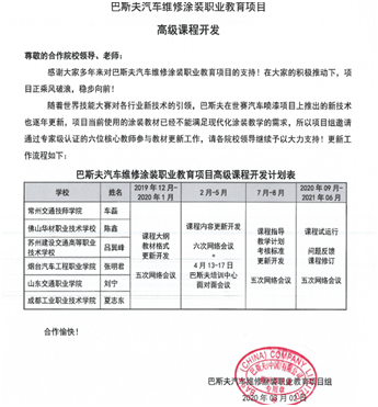 2019年底,我系吕翼峰老师顺利通过巴斯夫涂装维修项目专家级认证,并受企业方邀请,参与校企合作巴斯夫汽车维修涂装职业教育的高级课程开发项目。此时,正是我校实施“领航计划”的三年规划阶段,吕翼峰老师与巴斯夫的这一合作无疑也为我校“领航计划”的落实添砖加瓦。
