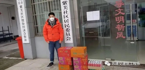 建筑16401周裕涛:2020年初,中华大地笼罩在“新冠病毒肺炎”的阴霾之中。全国上下团结一心抗击着这场突如其来的灾难。作为一名新时代的大学生,对所看到的、听到的先进事迹深受感动,我有了为社会也尽点微薄之力的想法,在父母的支持下,我于2020年2月7日向社区捐赠了一些物资(方便面和水),向义工及领导干部表示衷心的感谢,他们强烈的社会责任感和付出精神深深打动着我,他们就是我今后学习和工作的榜样。