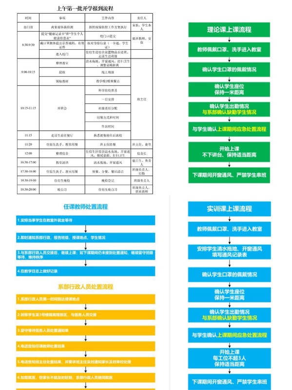 会议上进一步细化汽车工程系各场所的责任认定,依据学校《新冠肺炎疫情防控期间开学工作方案》,结合尹山湖校区疫情防控一日工作流程,制定并完善《尹山湖校区分批开学当日工作流程》、《理论课上课流程》、《实训课上课流程》,明确班主任、任课教师、学生在不同时间段的任务和职责。