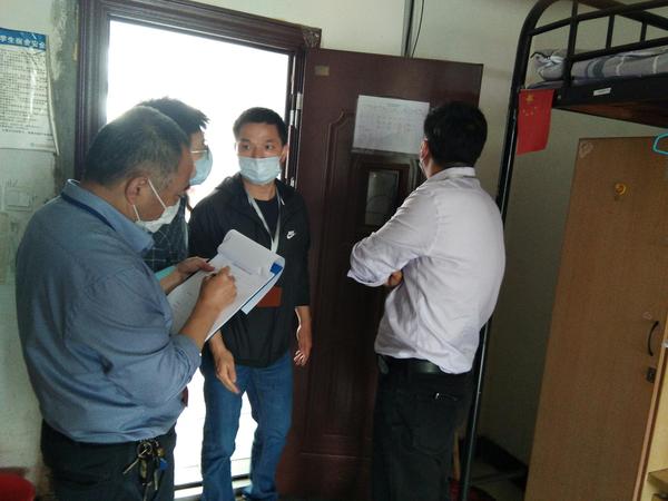 检查组先后对学生公寓、食堂等进行了一次全面排查。检查组成员每到一处都仔细查看、耐心询问。在学生公寓,副校长俞海方一行检查了公寓内所内的消毒设施、通风记录表等,详细询问了每天消毒、通风、学生进出公寓记录等情况,强调要严格按照防控预案的原则和要求,做好公寓的消毒、通风等工作;在食堂,俞校长认真查看食品保质期、卫生等状况、逐一检查食堂工作人员的健康证,要求落实食品安全监控体系,消除食堂的安全隐患,确保食品安全,让全体师生吃得安全卫生,吃得安心和舒心。