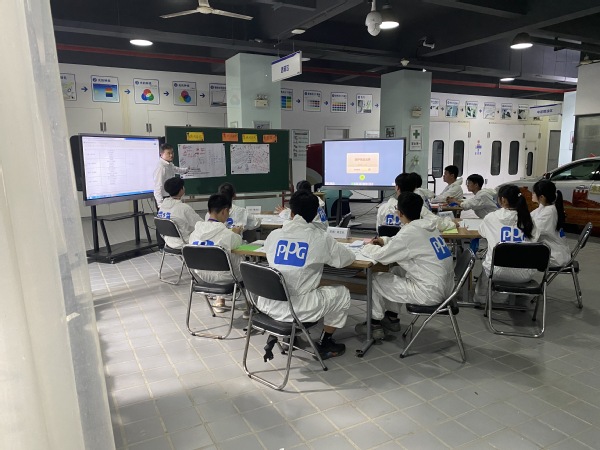 6月10日——11日,在汽车工程系涂装实训中心,16名学生和3名教师正在进行课堂实录,将行动导向教学法应用到实际课堂教学中。