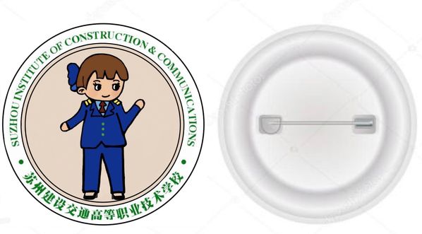 3.胸针。设计者:运营18401史予昕。胸针的外围是我们学校的中文名称和英文名称,而轨道交通工程系运营管理专业主要是针对服务类的,所以又在内圈加了一个地铁站务员的卡通图案。胸针一般都佩戴在左侧,离心脏最近的地方,可以让我们时刻谨记我们是轨道交通工程系以及建设交通的一分子,以学校为荣。