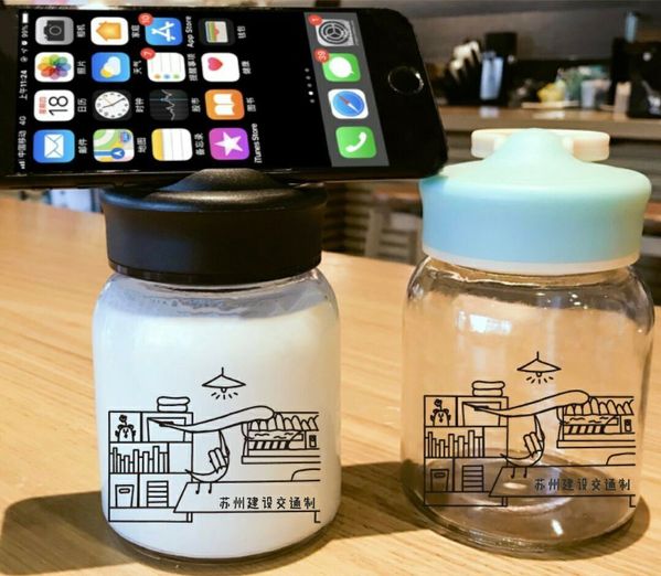 4.玻璃水杯。设计者:运营18401姜雅洁、运营18401申雨杉。本次文创作品主要创意为水杯上的这幅画。画上的主人公是以校徽为原型而改造的“J同学”,看书的造型及左边书柜寓意建交学子勤奋好学博览群书,右边窗户外的风景为一辆高铁即将经过,这代表了轨道系。最后,疫情还没有完全过去,希望同学们都戴好口罩,多喝水不要感冒,少去医院,保护好自己。