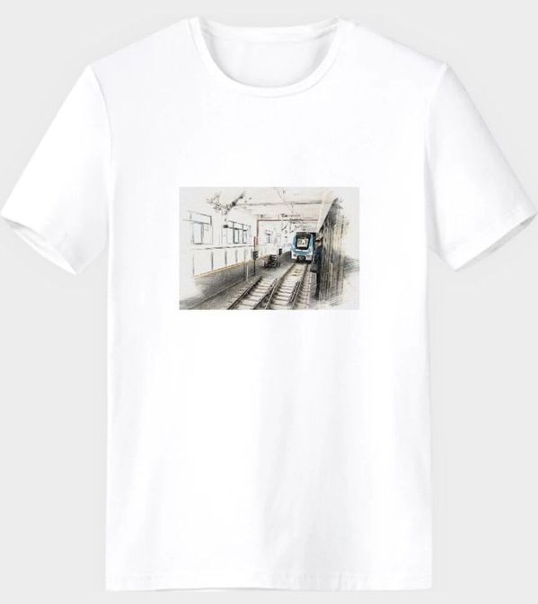 1.文化衫。设计者:运营18401史予昕、运营17401朱思佳。本次的设计主要采用轨道交通工程系文化——轨道系的教学楼和轨道实训室。轨道大楼一楼有站厅实训区,其用于模拟地铁运营的教学与实训,同时其余楼层用于课上教学。