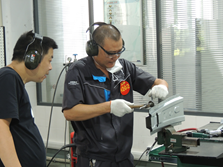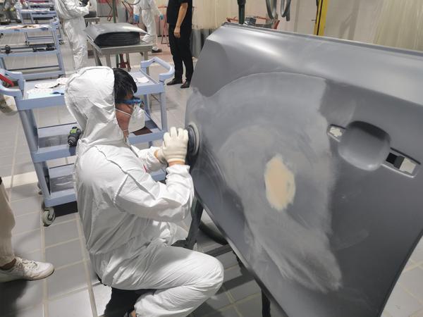 9点比赛正式开始,赛事共分两个赛项,汽车涂装赛项和汽车钣金赛项,分别在我校汽车涂装实训中心和车身修复实训中心展开。汽车涂装赛项的比赛共分三个部分损伤前处理、颜色微调和喷涂,历时3小时10分;汽车钣金赛项分为门板修复,电子测量和组合件焊接,历时2小时10分,在如此炎热的夏季,按标准工艺,穿戴上不透气的安全防护进行作业是非常不易的,比赛过程中每位选手的衣服是湿了又干,干了又湿,表现出了卓越的匠人精神和坚强毅力。