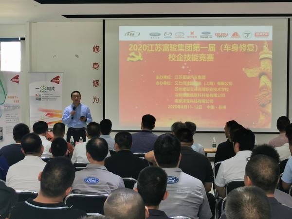 8月12日上午8点30分,技能竞赛开幕式正式开始,出席开幕式的领导有:江苏富骏汽车集团公司总经理:曹祥国先生;长安福特汽车销售有限公司华东区资深服务区域经理:霍凯先生;苏州建设交通高级职业技术学校副校长:戎成先生;艾仕得涂料系统(上海)有限公司大区经理:夏爽先生;南京泽宝科技有限公司总经理:束泽宝先生。