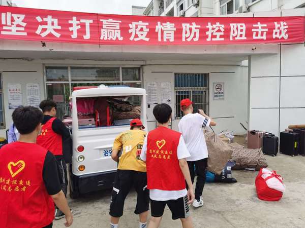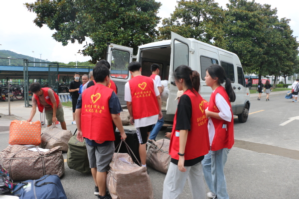 因为行李的繁多,学校特别安排了装行李的小货车,每位同学在自己的行李上贴上标签,以便寻找,志愿者的双手提包吃力的表情让我们记忆犹新。这是一次社会实践锻炼的好机会,让同学们感悟到为他人服务的辛苦和快乐。