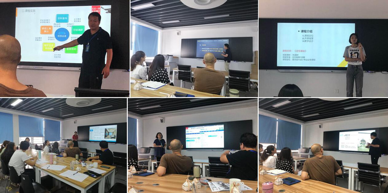 随后,许松、谭湘赟、武德芳、裴元生几位教师分别针对自己本学期所授课程进行说课。几位老师的说课各有所长,各有特色。许松老师提出当下教学活动中应注重数据的可视化、数据应能准确清晰地了解学生现状及特征,并按照设计行动导向教学的教学理念培养学生的专业核心素养;谭湘赟老师从今年所教课程特点和学期教学安排情况进行分析课程计划和教学特色与创新;武德芳老师从课程对接的实际工作环节和要求出发,提出教学中融入实际项目的重要性和必要性;学科带头人裴元生教授进行了压轴说课。她从《展示展馆设计》课程定位和方向展开,将社会对于岗位的需求、世博会系列展馆的整体设计融汇到课程设计之中,关于学生今后的就业岗位和专业发展途径进行了列表阐述,强调多方评价的重要性和实施过程,课程亮点突出课程对于社会服务的有效开展、学生每一次作业的交流和点评以及实施效果等。