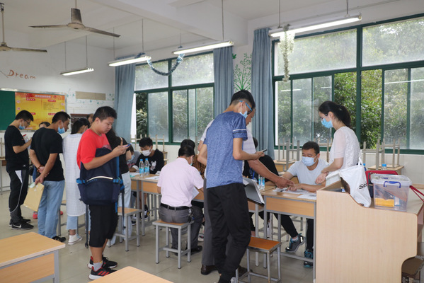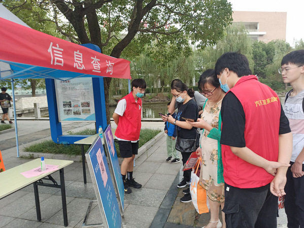 早晨7点左右,志愿者们已经活跃在校园各处,紧张而有序地做着迎新工作正式开始前的最后准备工作。不一会,已经有新生和家长前来报到。志愿者们积极热情地帮助新生拿取行李物品,引领新生完成报到手续,领取住宿用品等等。