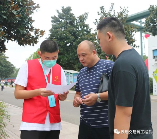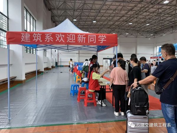 清晨空中飞扬的气球在和新生们招手,家长们带着孩子怀着欢快的心情来到苏州建设交通高等职业技术学校跟随着志愿者到达体育馆办理入学手续。