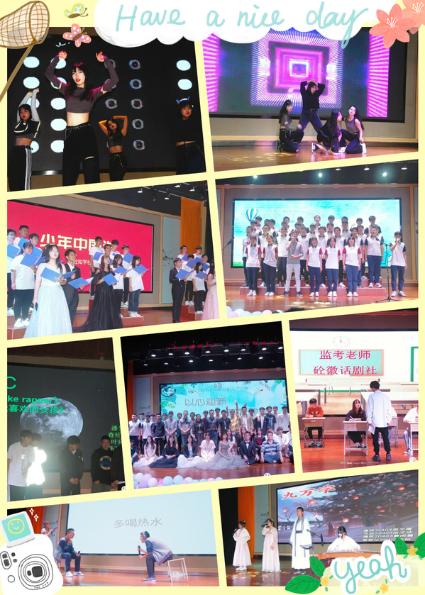 开场几位20级新生身着汉服给我们带来古风歌曲《九万字》,歌声婉转动听,古筝伴奏丝丝扣人心弦;砼徽话剧社用夸张、滑稽的表演展现了《监考老师》,生动形象地描绘了考试现场,强调了诚信考试、杜绝舞弊的考风考纪;FF舞蹈社和E-Star舞蹈社分别带来了舞蹈串烧《Partition》、《How you like that》,曼妙的舞姿配合着动感的音乐使全场气氛达到高潮;中场互动环节《寂静地呐喊》使得台下观众欢声笑语不断;SZC说唱社一曲《Fake rapper》传递着青春的肆意挥洒,曲末还有一段精彩的口技表演;砼知学社的朗诵《少年中国说》歌颂少年的朝气蓬勃,具有强烈的进取精神,振奋人心;最后潘志刚老师携同智能化20401班学生合唱《平凡之路》,希望大家在今后的学习生活中努力拼搏,锐意进取!