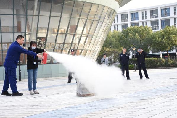 本次活动全校共有一千多名师生参加。伴随着警报响起,在保卫处高乃强处长的统一指挥下,全体人员严格按照突发事件应急疏散预案的要求,迅速进入各自岗位进行及时疏散,学生在老师的认真指挥下按照指定的安全出口和疏散路线,迅速有序地撤离教学楼,疏散到指定地点集合,并立即清点人数上报集合场地负责老师。在演练过程中保持了安全良好的秩序和快速反应的能力。吴中消防大队沈中队长对本次活动点评,指出疏散演练贴近实战,考验了紧急情况下的反应能力和逃生能力。他特别强调灭火器的使用方法,讲解逃生注意事项等。最后保卫处组织部分师生进行灭火实践活动,本次紧急疏散活动圆满完成。