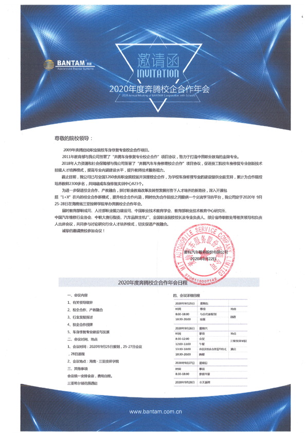 2020年9月25日至28日,奔腾校企合作项目年会在海南三亚召开,会议主题为“不忘初心共铸辉煌”,本次年会共邀请了人社部、教育部、交通运输部、汽车维修行业协会及来自全国多所中高职院校的负责人等300余人出席了会议。我校产教融合中心丛俊华处长,汽车工程系郭有瑞受邀参加。