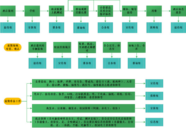 会议中讨论并通过了本次比赛前期准备工作的初步方案,方案中将比赛的前期物资准备工作进一步细化,分解为统计、租借采购、验收、布置四个环节,并明确了完成各环节的时间节点。随后,与会人员就准备工作中的具体事宜展开了激烈的讨论。