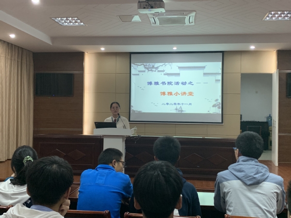 前期,校学工处通过系部推荐选拔了博雅书院的第一批学员。11月19日下午,基础部组织了博雅书院的首次活动——博雅小讲堂系列一,活动由基础部杨芳主任主持,学工处汪丽丽处长出席本次活动。