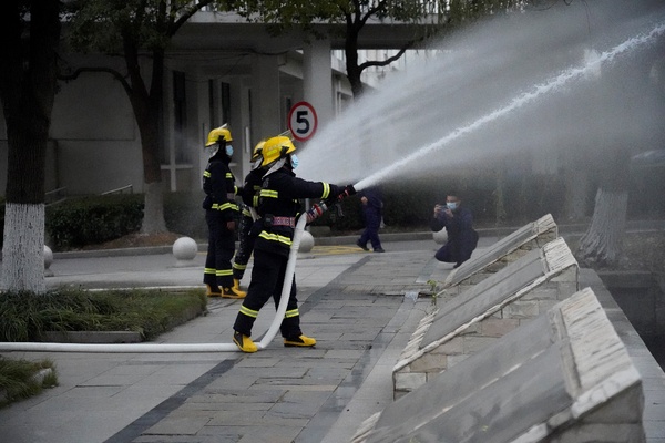 下午3点15分,疏散演练正式开始,西教学楼师生在烟雾弹和警报声中有序进行疏散,严格遵守七个不准,迅速有序到达安全区域集结。消防宣传车现场播放宣传短片,郭巷中队瞿队长讲解灭火器使用的注意事项并邀请同学一起参与灭火,接下来中队消防员使用消防车水枪模拟灭火,最后在消防员的讲解中同学们有序参观消防水罐车、消防泡沫车、消防宣传车以及消防设备。