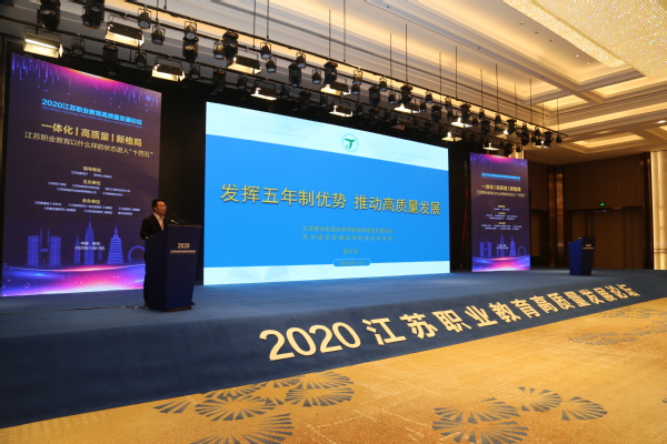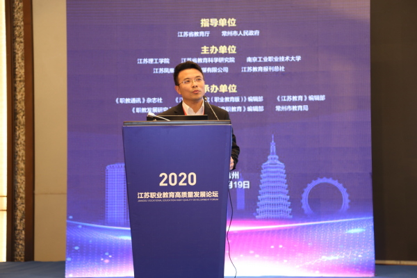 12月19日,由江苏省教育厅、常州市人民政府指导,江苏理工学院、江苏省教育科学研究院、南京工业职业技术大学、江苏凤凰报刊出版传媒有限公司、江苏教育报刊总社主办的2020年江苏职业教育高质量发展论坛在常州举行。我校党委书记、校长郝云亮参加了此次论坛,并作了题为《发挥五年制优势 推动高质量发展》专题报告。