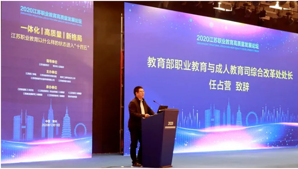 江苏职业教育高质量发展论坛每年年底举行,论坛总结江苏职业教育发展成绩和经验,并就下一阶段的发展重点、路径和方法进行研讨。任占营在致辞中称赞江苏职业教育高质量发展论坛已经成为展示江苏职业教育高质量发展成就、总结江苏职业教育发展经验、汇聚职业教育发展新思想的重要平台。(文/孙书娟 图/论坛主办方)