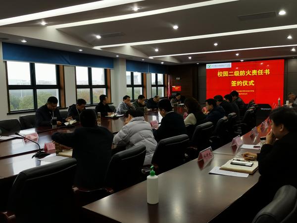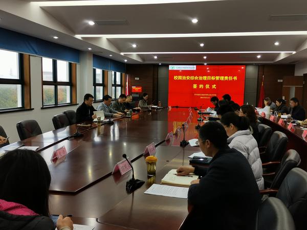为进一步做好校园综合治理管理工作,切实将安全抓实抓细,真正落实到位,责任到人,形成齐抓共管的局面,3月1日上午,我校在行政楼二楼会议室举行了2021年校园治安综合治理目标管理责任书和二级防火责任书签订仪式。校领导、各处室、系部主要负责人参加会议,仪式由副校长俞海方主持。