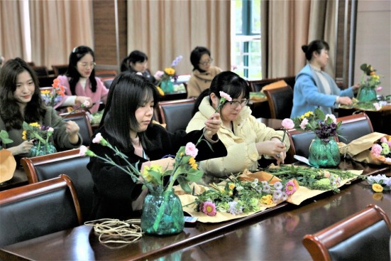 春风送暖,花香满屋,3月19日,苏州建设交通高职校在国际教育园校区组织举办了庆三八“情暖三月 花漾生活”插花培训活动。本次活动由我校工会组织、校女工委具体落实,是我校庆三八系列活动之一,共有60余名女教职工参加了本次活动。