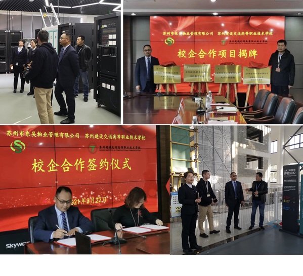 2021年3月22日,苏州建设交通高等职业技术学校与苏州市东吴物业管理有限公司校企合作签约仪式在学校行政楼311会议室举行。苏州市东吴物业管理有限公司副总经理冯玉忠、工程副总监孙美华、人力资源部经理徐湘楠、工程部副经理刘兵、人力资源部人才储备中心经理康静、苏州建设交通高等职业技术学校副校长戎成、产教中心主任丛俊华、产教中心副主任郭清平、招就处处长陈晖、建筑工程系主任黄建国、建筑工程系副主任鞠志祥、建筑工程系实训科许俭、建筑工程系教务科陈小雁、建筑工程系智能化专业学科带头人姜敏出席本次会议,会议由建筑工程系主任黄建国主持。
