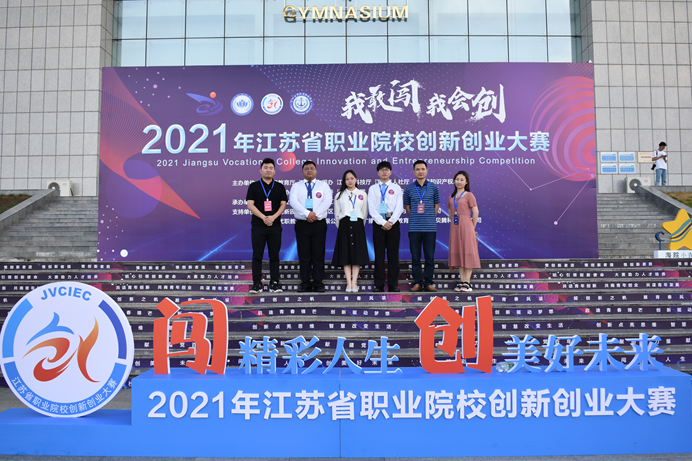 2021年7月18日-20日,在学校戎成副校长带领下,我校师生赴南京参加2021江苏省职业院校创新创业大赛决赛。经过顽强拼搏,我校参赛的2个项目获1个一等奖、1个二等奖。加上在初赛中获得的三个三等奖,今年我校参赛的五个项目全部获奖。