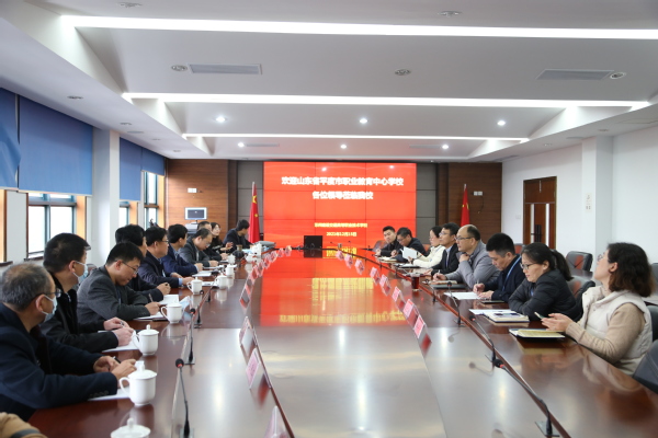12月15日上午,平度市职业教育中心学校朱风彬校长一行12人来我校调研交流。学校党委书记、校长郝云亮,副校长谢永东及相关处室负责人参加了交流座谈会。