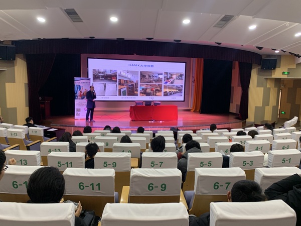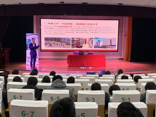 首先,陈晖处长介绍了国内学习与国外学习相结合的国际化人才培养模式以及本次参会的海外高校:芬兰国立海门应用科技大学、韩国国立交通大学、明知大学。陈晖处长强调申请海外高校要结合自身家庭经济条件,针对意向院校的相关要求做好准备,确定目标,合理规划。鼓励有出国留学意向的学生提前准备,并祝愿学生们能够获得出国机会,留学深造。
