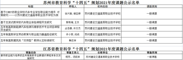 在近期开展的江苏省、苏州市“十四五”规划课题立项评审活动中,我校六项课题获得立项,总立项数在同类型职业学校中名列前茅。立项课题名单如下。