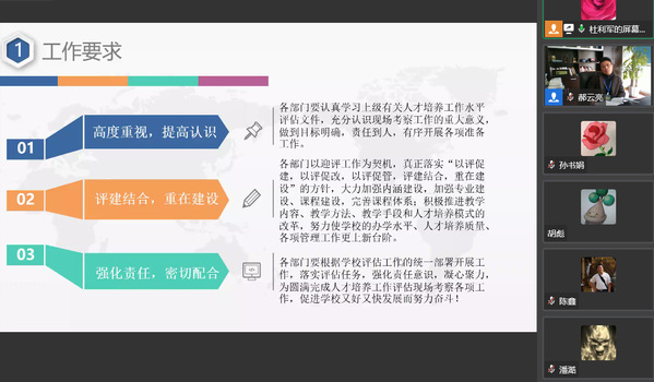 为迎接省五年制高职办学单位人才培养工作水平评估现场考察工作,3月7日上午,我校召开迎接评估现场考察工作线上动员会。会议由校党委书记、校长郝云亮主持,全体校领导、各部门负责人参加了会议。
