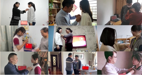“传承家风 爱国爱家”家长为新团员佩戴团徽