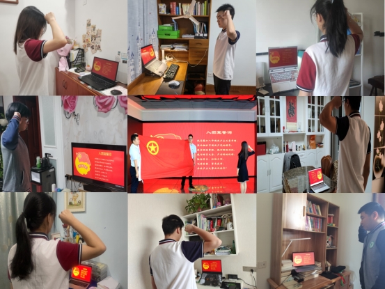 会议在雄壮的国歌中拉开序幕,入团仪式正式开始。团员和团员积极分子注视屏幕上国旗,高歌国歌,庄严肃穆!