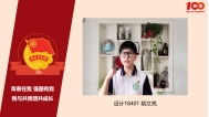商贸系物流19401班的杨暑月:“青春百年心向党 同心战役向未来”,习近平总书记指出:“新时代的中国青年是好样的,是堪当大任的。”在党中央的坚强领导下,全国各族人民风雨同舟、和衷共济,筑起了一道厚实、稳固的防疫城墙。在这场伟大战“疫”中,各个领域都涌现出了一大批令人钦佩的青年英雄模范、先进个人。我们共同努力,必将赢得疫情防控斗争的最终胜利。