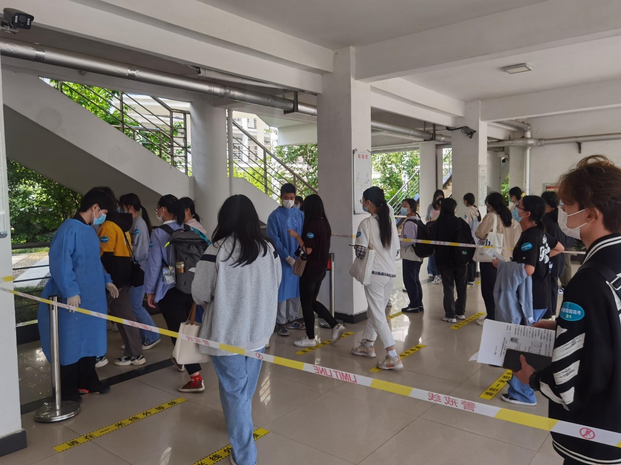 考试当天,郝云亮校长、谢永东副校长在现场指挥调度考试工作;防疫副主考全程巡视,快速处置突发事件。学校为考生进场设置了专用通道,执行“一米线”要求。两场考试间隔期间,有序组织考生以及考务工作人员进行核酸检测。