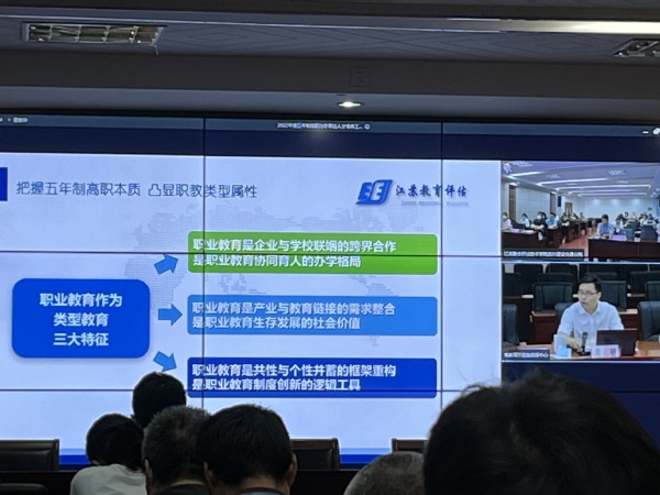 8月26日上午,学校领导班子成员及各部门负责人采用线上会议形式参加江苏省五年制高职办学单位评估培训会议。会议以“聚焦人才培养 推进五年制高职高质量发展”为主题,由江苏省教育评估院副院长史根林主持。