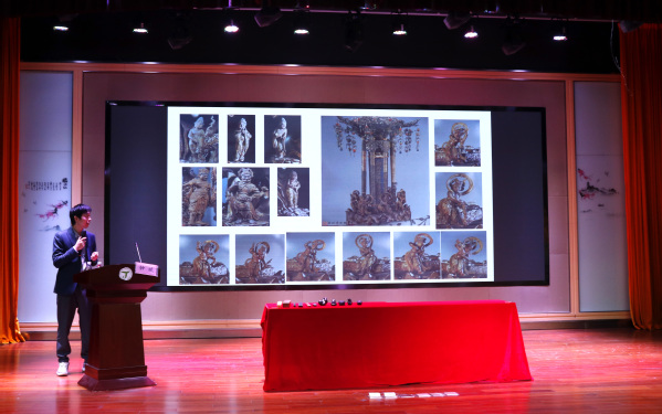 苏作木雕构思精美、内涵深刻,既能美化环境,又能陶冶情操。讲座上,钟老师首先介绍了苏作木雕的发展历史,通过对各时期苏作木雕的工艺特点、使用材料以及代表作品的讲解,让同学们对苏作木雕有了初步的认识。随后,钟老师详细介绍了苏作红木木雕的制作工艺和流程,指出其制作手法丰富、不拘一格的特点。他认为,一件优秀的红木作品不仅仅是产品,更是作者对红木雕刻技艺的传承、思考和探索。最后,在互动环节,钟老师带来了精美的苏作红木木雕,通过近距离欣赏这些优秀的作品,同学们不但了解了苏作红木木雕蕴含的宝贵价值,更从中领略到专注、坚守、精益求精的匠人品质。