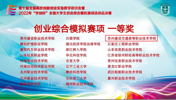 比赛中,我校学子精诚团结,沉着应对。经过激烈角逐,来自我校工程管理系沈公淳、徐晨阳和轨道交通系顾佳妮组成的苏州建设交通“我最强团队”获创业综合模拟主体赛全国决赛一等奖,李文广、陈桦两位指导老师荣获“优秀指导教师”。