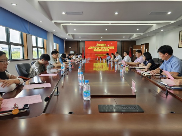2023年7月5日上午,受上海市教育委员会职教处委托,上海商学院组织中高职教育贯通课题调研考察团一行15人,由原上海商学院高等技术学院、继续教育学院联合党总支书记陈敏带队来我校考察交流。我校党委书记、校长郝云亮,副校长戎成、谢永东及相关部门负责人参加活动。