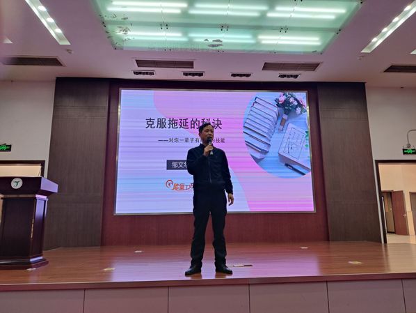 如何克服拖延?如何能够坚持?这些问题时常困扰着同学们,是甩不掉的成长烦恼。本次讲座主题为《克服拖延的秘诀》,为大家化解烦恼提供指引。讲座首先通过一个互动的小活动,让大家对坚持的困难有了生动的理解,然后展开讲述原因是什么,怎么去应对。在讲述应对方法的时候,根据学习生活中的实际案例,仔细讲了3个步骤,分别是确立目标,放大价值和迈出第一步,从而帮助学生能够理解怎么操作。本次培训取得了预期的效果。(图/文 邹文华)