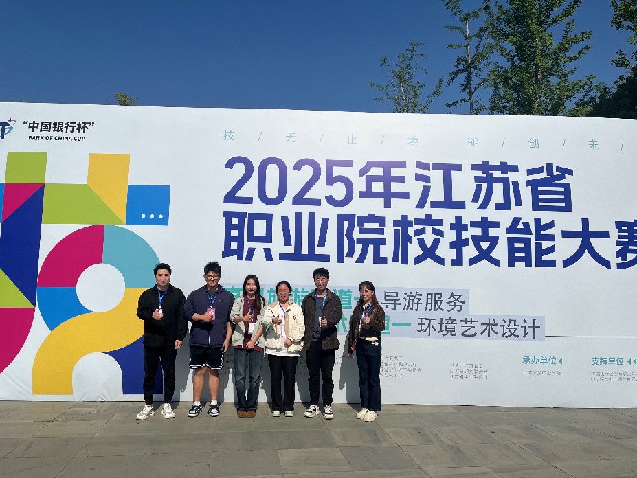 2025年4月13日至15日,2025年江苏省职业院校技能大赛高职环境艺术设计赛项在江苏旅游职业学院举行,全省共有68组职业院校的选手参与角逐,我校环境艺术工程学院张金威、王鑫老师指导的展示21401班王一番、环艺21401班杜思颖、环艺21401班朱淳悦同学获得一等奖。