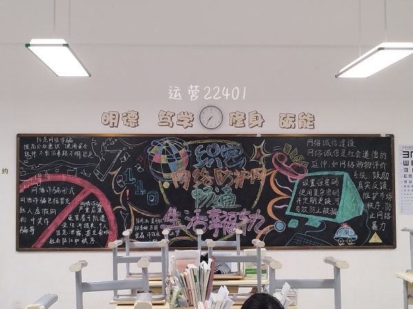 为巩固和扩大宣传效果,学院同步组织了网络安全宣传板报评比活动。各班级同学们充分发挥创意与才智,一幅幅图文并茂、设计新颖的黑板报,成为了各班教室里一道亮丽的风景线。板报内容紧扣主题,既有对《网络安全法》等法律法规的通俗解读,也有对安全上网、文明用网行为规范的温馨提示。