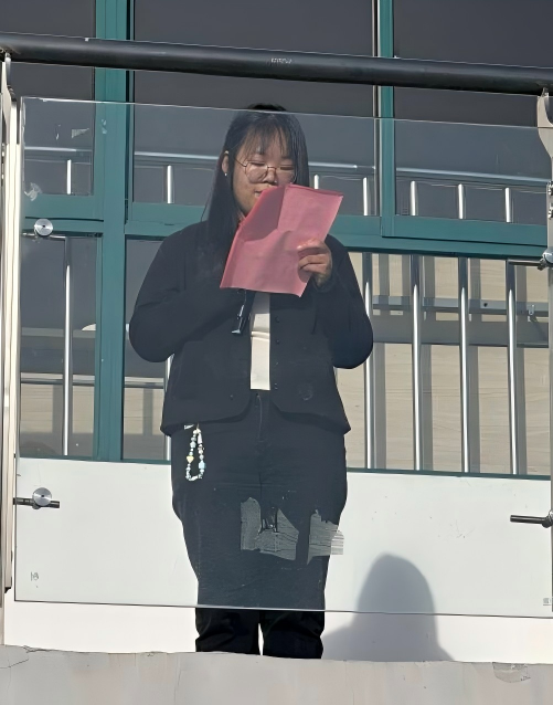 升旗礼毕,学生代表府怡静以“拒绝校园霸凌与网络暴力”为主题发表国旗下讲话。发言强调,面对校园霸凌与网络暴力,每个人都应成为改变的力量。若遭遇此类行为,不应忍气吞声,而应及时向老师、家长或学校心理辅导员求助,并注意保留相关证据,依法维护自身权益。讲话呼吁全体同学携手并肩,以实际行动抵制不良行为,共同为建设安全、友善、和谐的校园环境贡献力量。