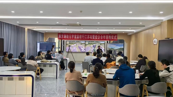 为确保合作能够真正落地生根,南方测绘集团还特意为老师们精心准备了精彩的主题讲座。袁大伟总经理以《南方测绘低空管控与信息服务整体解决方案》为题,深入浅出地介绍了测绘地理信息行业的一些前沿技术动态,以及测绘地理信息与建筑工程学科融合创新的无限可能。教育事业部任大勇总监则带来了《数智赋能赛教协同背景下校企合作的南方实践》的专题分享,他们巧妙地将虚拟仿真技术融入测绘地理信息学科的教育教学中,让学生能够随时随地展开学习,极大地拓宽了学习的边界。此外,南方技术团队还现场进行了元宇宙智能系统的功能展示,师生们纷纷踊跃参与,亲身体验了这一前沿科技的魅力。