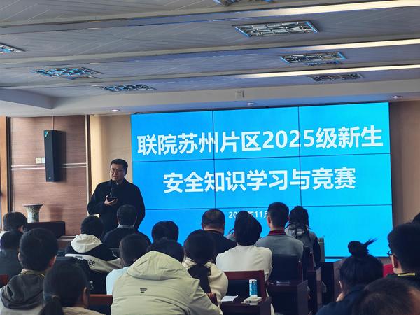 2025年11月21日下午,江苏联合职业技术学院苏州片区 2025 级新生安全知识竞赛初赛在我校顺利落幕。学校副校长戎成出席活动,苏州建设交通分院、苏州分院等14家片区办学单位共同参与,活动由学生工作处处长彭善涛主持。
