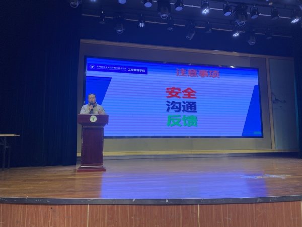 12月5日中午,工程管理学院2021级学生离校实习说明会在报告厅西厅隆重举行。学院副院长练志兰、院长助理张立高、院长助理孙宜兵及2021级全体班主任和学生参加会议,会议由张立高主持。