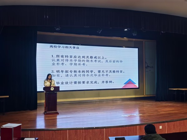 最后练志兰副院长发表总结讲话。她向全体21级毕业生提出四点期望与嘱托:健康方面,希望大家保持规律作息,坚持体育锻炼,“身体是革命的本钱,只有拥有健康的体魄,才能更好地迎接工作挑战”;学习上,鼓励同学们将理论与实践相结合,“带着问题去实习,在实践中深化对专业知识的理解”;工作中,强调要培养责任意识和团队精神,“从小事做起,认真对待每一项任务,虚心向师傅请教”;她希望同学们心系母校,“常回家看看,学院永远是你们坚强的后盾。”练院长的讲话语重心长,赢得全场热烈掌声。