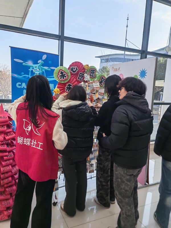 为引导学生树立积极向上的人生态度,将对未来的美好憧憬转化为具象表达,2025年12月29日下午,由学生工作处邹文华老师指导,驻校社工吕老师联合心星正能量心理社志愿者团队,共同在我校举办“心愿未来”心理健康主题打卡活动。活动以温馨有趣的形式传递新年祝福,助力学生心理健康发展。