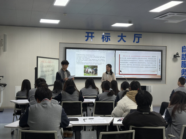 随后,我校教师薛洋洋以《江山就是人民,人民就是江山》为题,通过课前任务驱动、小组合作探究等多元手段,将抽象理论转化为可感知的实践认知。教学中融合物流专业“最后一公里”服务理念与党的群众路线,有效增强学生为人民服务的行动自觉。