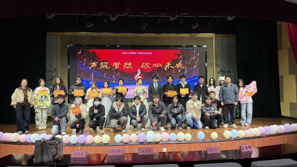 决赛现场,灯光璀璨,座无虚席。经过初赛、复赛层层选拔脱颖而出的十位选手依次登台,用歌声诠释青春梦想,用旋律传递情感力量。经过激烈的比拼,智能建造25401班李润获得一等奖,建筑21402班翟生娟、袁陈欣、市政22401班杨政获得二等奖,智能化25401班金添、建筑23402班段涵雪、市政22401班石锦标、市政24401班陆江南、智能建造25401班沈玉馨、张嘉浩获得三等奖,现场评委老师们为参加决赛选手进行了颁奖。