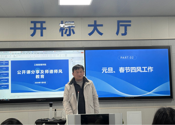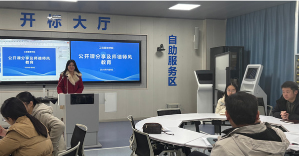 2026年1月9日下午,工程管理学院于J306开展了师德师风教育和公开课分享活动,会议共三个议程。本次活动由副院长练志兰主持,全体教师参加。